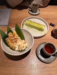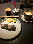 опыт японской кухни. шли за интерьером и новыми блюдами японской кухни, которые еще не пробовали. были в обед и совсем одни. Обслуживание вежливое, официант был приветлив и разбирался в меню. но забыл принести одно блюдо из заказанных😅 хотела попробовать бобы эдамаме, популярные в стране восходящего солнца и редко встречаемые в России. очень понравился интерьер, аскетично, по-японски. Обязательно сходить в уборную и порадоваться эргономичному дизайну, дверям из шпона, а также саду камней по дороге в уборную. пробовали спринг роллы с крабом , курочку на шпажке (вкусно) битые огурцы (обычно) габа-чай (хорошая подача , правильная проливная заварка) и два совершенно обалденных десерта❤️. вот что обязательно попробовать там! Матча десерт и жареные бананы. фото прилагаю) В целом все понравилось, я бы сказала слегка завышен ценник для такого уровня, но все-таки локация в центре видимо обязывает. без вау эффекта , но достойно, интересно, и за десерты отдельный +.