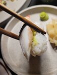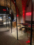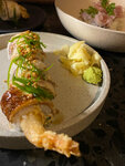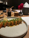 Совершенно случайно узнала об этом месте, решили сходить с молодым человеком. Итак: - Интерьер: 10/10 Очень эстетично! Ещё хочу отметить, что за общим столом было достаточно комфортно (нет ощущения, что сидишь в толпе) - Официанты разбираются в меню, готовы подсказать и рассказать про позиции - Кухня: 7/10 Честно, ожидания были очень высокими, но не оправдались. Заказывали: теплый ролл с камчатским крабом (мне понравилось, вкусно), утка с лапшой (мясо розовое, то есть неполная прожарка, очень это удивило, потому что о степени прожарки надо сообщать), креветки в панировке с орехово-манговым соусом (норм), лимонад с сакурой понравился. Ставлю 7, потому что в таком ценовом сегменте есть рестораны с гораздо более вкусной японской кухней. И ещё отмечу то, что сразу задаёт впечатление: запах еды при входе, это кошмар, крайне редко такое встречаю, мы ведь не в столовую пришли, а в ресторан с хорошим таким ценником 🥲 Второй раз сюда не приду(