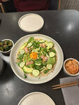 Долго собирались посетить данное место и вот звезды сошлись. Не могу сказать, что был эффект вау. Понравилось обслуживание, доброжелательная атмосфера, разнообразие в меню, но мы пошли по классике - лапша, рис с морепродуктами и пара закусок, так как время уже было позднее. Морепродукты - два гребешка и два лангуста, в целом этого достаточно, но все равно довольно странное количество. Битые огурцы и капуста кимчи супер! Молочный улун (те гуань инь) очень хороший! В целом хотелось бы прийти попробовать другие позиции, но пока неоднозначное мнение