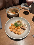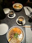 Начну, пожалуйста, с визуала. Для меня очень эстетично, красиво и ничего лишнего. Минимализм во всех его проявлениях. Даже блюда выглядят очень минималистично и это просто восторг 🤩 Продолжу про официантов. Приветливы и приятны в общении. Всегда подскажут что и к чему лучше выбрать. Включены в работу,а не в телефон. А теперь самое интересное. Кухня. Время подачи зависит от нагрузки, что логично. Но всегда стараются приготовить как можно быстрее. Мое сердце покорило несколько блюд -утка,муэр и рамен. Сливочная лапша и ломтики поджаренной на гриле утки. Закуска - эдадаме с соей. Обжаренный бобы в соевом соусе и сверху кунжут. Создается легкое ореховое послевкусие,идеально. Рамен кимчи с говядиной-я не очень люблю острое, но тут легкая остринка в бульоне (просила принести кричи отдельно) отлично вписывается. Из напитков - вишневый пуэр и бархатец . Бархатец освежает и не супер-сладкий. И на десерт -бананы робата. Вкусно,но белый шоколад на мороженом - для меня был сладким. Но при этом десерт достаточно легкий и теплый. Не раз уже была в этом ресторане и каждый раз открываю что-то новое и вкусное Есть только фото бобов 😌потому хочется наслаждаться,а не отвлекаться