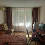 Отдыхала с сыном 19 лет в сентябре 2024 года. Размещение во втором корпусе, номер двухкомнатный люкс. Корпус после ремонта, номер очень прилично выглядит, единственный минус это старые диваны, необходима их замена, т.к. уже ощущаются пружины. В корпусе на каждом этаже стоят кулеры с горячей и холодной водой, в номере станция для приготовления чая или кофе. Очень просторный балкон с сушилкой, столиком и парой стульев. Кроме того, в номере предоставляется гладильная доска с утюгом, а также небольшой сейф для хранения важных вещей и документов. Уборка номера производилась каждый день, замена постельного белья- один раз в три дня. Не очень удобна замена пляжных полотенец также раз в три дня, обычно в других отелях их меняют ежедневно, т.к. с ними гости каждый день ходят на пляж и эти полотенца чаще загрязняются. Персонал вежлив, администраторы в корпусах всегда готовы помочь, девочки на рессепшене выше всяких похвал. Очень внимательно относятся к гостям, в мой день рождения, который выпал на время отдыха, меня поздравили небольшим сюрпризом от санатория, что было очень приятно. Питание в столовой без изысков, но еда была всегда свежая, в меню присутствовали курица, говядина, свинина, рыба, десерты, свежие фрукты, молочнокислые напитки, омлет, каши, первые блюда и многое другое. В столовой в постоянном доступе пиво и вино, более крепкие напитки в виде коктейлей присутствовали в ресторанах и барах на территории санатория. Территория очень зелёная и ухоженная . Пляж находится примерно в 7-10 минутах ходьбы по ровной территории через соседний отель. Пляж очень ухоженный, на территории пляжа находятся душевые кабины, кабины для переодевания, туалеты, бар с прохладительными напитками и пивом, спортивная площадка, лежаки с навесами. От санатория осталось очень приятное впечатление, спасибо руководству и персоналу отеля за хороший отдых.