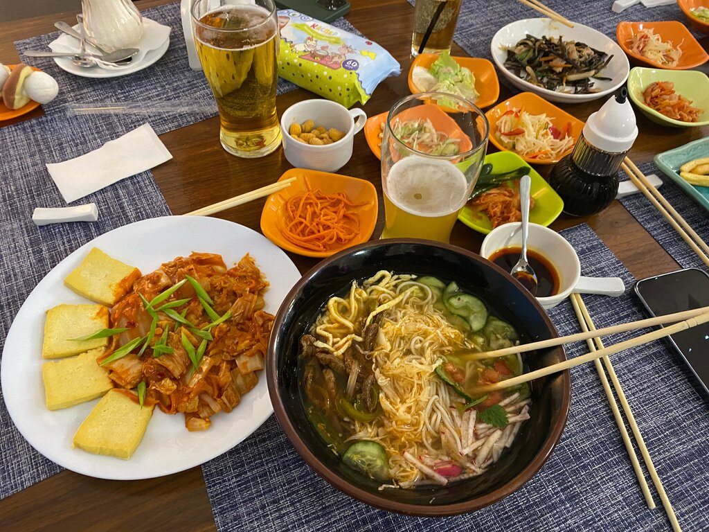 Приятное место! Были там 27 декабря (суббота), совсем одни, видимо, из-за предпраздничных дней)) Люди заходили только за онлайн-заказами. Очень-очень вкусная еда, немножко по-домашнему. Большие порции супов. Жареная во фритюре курица (название не помню) — нежнейшая, сочная, с хрустом. Очень понравилось, что облепиховый чай был без сахара, сахар подали отдельно. Из недочётов: в меню сложно разобраться (нет пометок, какие блюда острые, нет иллюстраций, очень много позиций); на фоне играет радио Романтика — иногда такая музыка разрушает атмосферу, органичнее была бы национальная музыка или что-то нейтральное. Токпокки подали остывшим. Официант — очень приятная, приветливая женщина, всё понятно объяснила, сориентировалась нас, что в стоп-листе, какие блюда взять с учётом предпочтений. Хотим вернуться ещё и попробовать другие позиции в меню.
