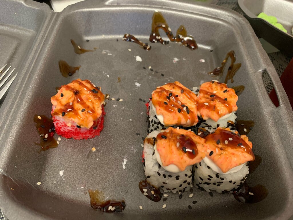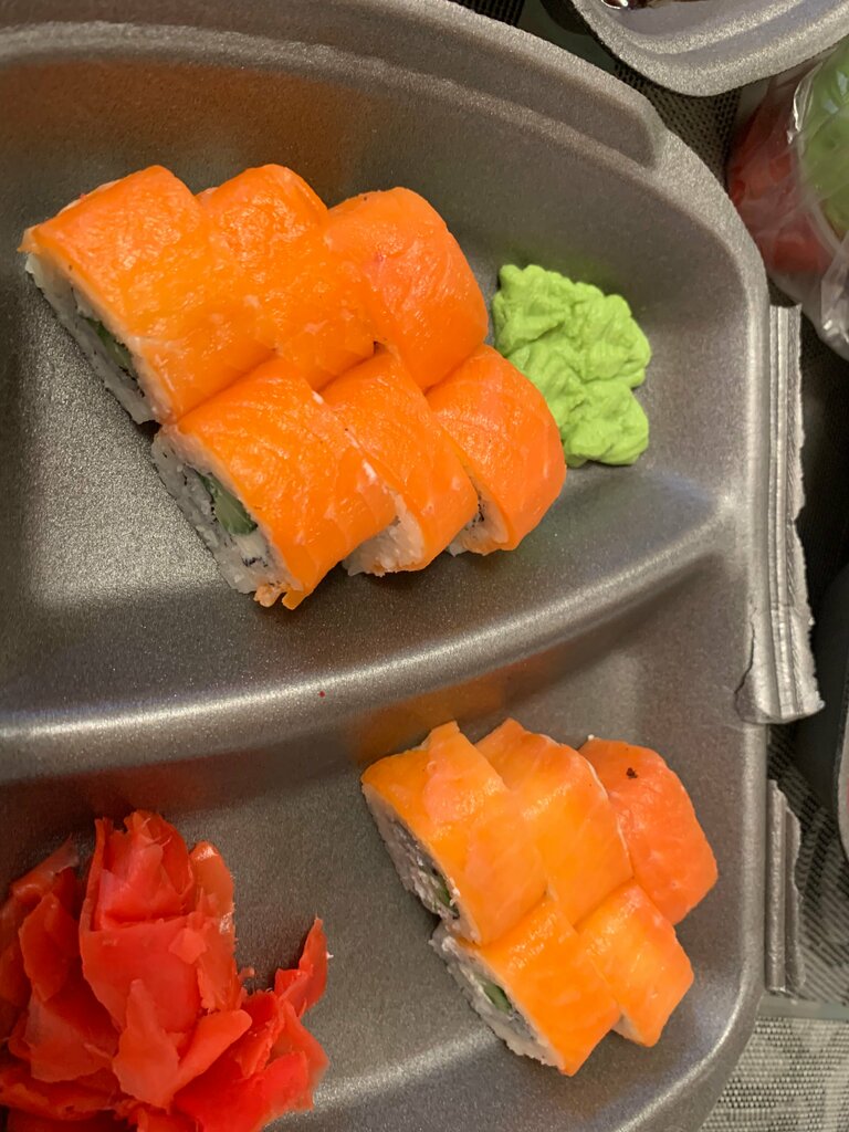 Ужасные роллы, видимо заведение не знает как они вообще должны выглядеть. Рыба нарезана настолько тонко, как будто лежит просто крашенная салфетка, а цвет у нее как будто она полежала на солнышке пару дней. Короче эмоции отрицательные, Обломова на вас нет)