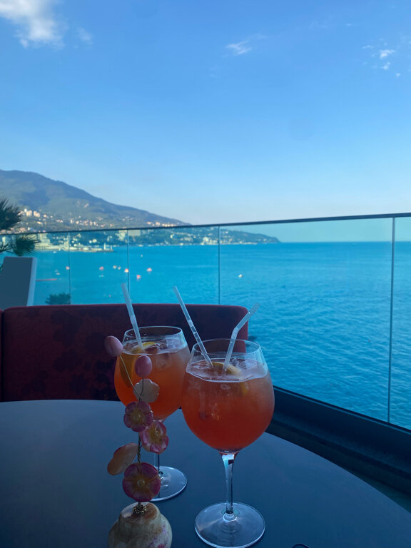 Потрясающий вид на море и Ялту, стильно, вкусно и комфортно! Замечательный бар и коктейли.