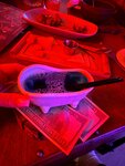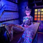 Были в среду, проходил квест от шпионки, очень понравилась её юморной общение, подача , посмеялись от души 😃 Квест было проходить реально интересно, чем просто сидеть и пить)) Интерьер заведения крутой, необычно, интересно, панно с сисечками😁, машина, ванна, филейная часть ,торчащая из барной стойки)) Коктейлей очень много 🔥цены всякие и подешевле и подороже. Прекрасно поющая вокалистка, я заслушалась☺️