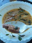 Место не рекомендую! Солянка кошмарная, есть не возможно. Пюре горькое, даже с мясным подливом! "Отбивная" язык не поворачивается так её назвать. Одни сухожилия и сухой приторный вкус! Мы "отлично" покушали и прям всё съели без остатка...