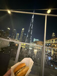 I cannot agree with the previous commentators. We came in during the day, there weren't many people, which is a huge plus for me. I sampled 2a mini burgers with truffle (just top for me), and 2a original ones with meat (cucumber is too salty and interrupts the taste), plus potatoes with cheese (but it's just too much for me) and a pomegranate drink (unusual taste, but not straight top). The price came out to 197 dirhams for my order, expensive, well, how to see if I was full or overeated, although after 4 hours of walking along the Dubai mall, they drove and caught up with ice cream like a lotus (that's the top). The view is certainly not bad, but we didn't really look at it, there was no need. There are almost no places there in the evening.