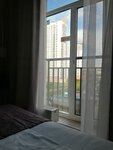 Проживали в апартаментах на 21 этаже неделю. Вид из окна красивый. Приятно проводить на балкончике чаепития. Вода водопроводная хорошая, кожу не сушила, есть фильтр питьевой воды - вода без посторонних привкусов. В номере было дополнительное одеяло, но отсутствовал второй комплект белья. Учитывая, что заселяются семьями, и есть раскладной диван, второй комплект постельного белья должен быть. Также на троих была всего одна зубная щётка и одна пара тапочек, но эту ситуацию оперативно разрешили 👍🏻 Через три дня интересовались требуется ли уборка. Посуда была чистая. Для туристов отличное и комфортное место проживания. На мой взгляд до метро далековато пешком, но ничего не поделаешь) Ещё рядом парк, пруд с утками, музей блокады Ленинграда.