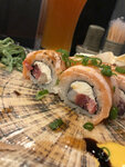 Хороший сервис Все было вкусно, обстановка приятная. Чистые уборные..:) Дополняю отзыв спустя 4 месяца после посещения 7 января 2026: Подача блюд изменилась. Нам принесли сухую Филадельфию , все что вы видите на тарелке на моих фотографиях от августа больше не подают в таком виде. Роллы были постоявшие , рис в них сухой. Классическая Филадельфия с горсткой имбиря .. такое я где угодно поем. Ходить в заведение больше незачем. Раньше подавали к роллам салат и стоили они 995 руб. Сейчас все с тарелки убрали , стоимость блюда выросла и порция засохших роллов обойдутся вам 1195. Не рекомендую это заведение. Больше не вернусь.