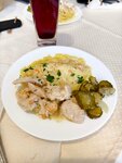Брали комплексный обед за 350 рублей. Обеды там с 11.00 до 15.00. Салат, суп, горячее, компот с булочкой. Очень вкусно. Большие порции, я все не осилила. Официантка очень вежливая и внимательная, быстро подавала блюда.