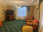 Мне достался двухкомнатный номере повышенной комфортности с двумя туалетами. Просторная спальня с удобной кроватью и отдельная комната с телевизором. Не понял, зачем в таком номере — маленькая кухонька, а также большое окно в ванной комнате. А напротив желой дом) Душевая кабина с массажем и современный телевизор указывали на повышенную комфортность. Вечером появился резкий запах в туалете, но персонал всё быстро решил. Спасибо. Мебель устаревшая и требует обновления. Странные обои, создают ощущение дискомфорта Пивной ресторан на первом этаже подойдет для вечернего расслабления. Есть своя парковка, но платная или нет не знаю. Обычный завтрак, ничего выдающегося. Персонал старательный и внимательный. Эта гостиница и номер подойдут людям, приезжающим в служебные командировки. Для семейного отдыха обстановка не совсем комфортная.