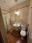 Мне достался двухкомнатный номере повышенной комфортности с двумя туалетами. Просторная спальня с удобной кроватью и отдельная комната с телевизором. Не понял, зачем в таком номере — маленькая кухонька, а также большое окно в ванной комнате. А напротив желой дом) Душевая кабина с массажем и современный телевизор указывали на повышенную комфортность. Вечером появился резкий запах в туалете, но персонал всё быстро решил. Спасибо. Мебель устаревшая и требует обновления. Странные обои, создают ощущение дискомфорта Пивной ресторан на первом этаже подойдет для вечернего расслабления. Есть своя парковка, но платная или нет не знаю. Обычный завтрак, ничего выдающегося. Персонал старательный и внимательный. Эта гостиница и номер подойдут людям, приезжающим в служебные командировки. Для семейного отдыха обстановка не совсем комфортная.