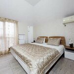 Очень уютный трехкомнатный номер. Две спальни и гостиная с кухней. Чистый. Удобный. Есть холодильник, плита, кондиционер, стиральная машина , посуда. Во дворике столики, можно посидеть на улице. До моря идти по тенистой улице 5-7 минут . Рядом расположены несколько нормальных столовых . Для недорогого жилья прекрасный вариант. Только плюсы.