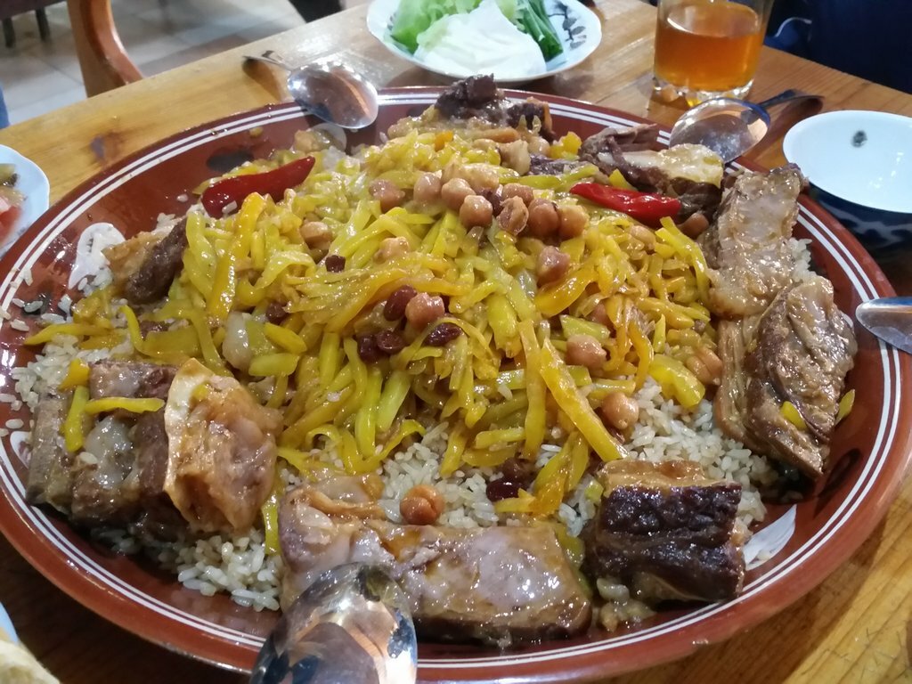 Место скромное, но часто именно такие таят в себе неожиданно приятные сюрпризы. Зашли попробовать шашлык на вынос, заодно взяли лагман, самсу и лепешку. Шашлык из бараньей мякоти шикарный - на удивление мягкий, сочный вкусный, жирный в самую меру, лучше пока не пробовал, хотя много где брал, включая тот же Кавказ и Узбекистан. надеюсь, что не просто повезло, а так постоянно. Лагман вкусный, но его вариаций куча и там уж кому что больше нравится. Самса жирновата и на странном жиру, но наверное на Узбекский манер (там не пробовал) - татарская вариация нравится больше. А вот лепешки разочаровали, даже рядом не идут с теми, которые брали в Самарканде (почти слоистое тесто, которое не черствеет неделю) - тут довольно пресно, обычное и черствеет через день. Но лепешка - мелочь на общем фоне.