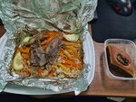чудесный плов с мясом, порция большая - я объелся. вместе с пловом подали салат и лепёшку (тоже вкусняво!) компот тоже чудесный. приду ещё :) успехов и процветания хозяевам кафешки