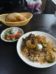 Плов прямо говоря не вау. Мяса нету, один жир. Прайс по конкурентам если смотреть то на верхней планке, фактически 500₽ за порцию риса со вкусом жира, салата из помидоров и огурцов и куска хлеба,