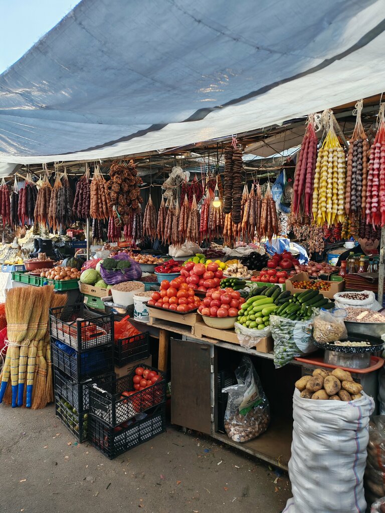 A real Soviet-style grocery market. You can bargain and look for exactly what you like. There is a large selection of meat, fish, fruit, and nuts with churchkhels. Prices are low, the sellers are friendly, almost everyone speaks Russian.