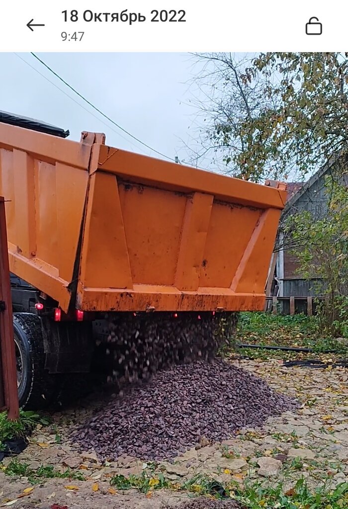 Заказывали щебень. Привезли всё вовремя, машина всё завезла прямо на участок. Спасибо водителю. У нас узкий проезд, аккуратно всё завёз, не повредив дорогу.