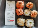 Добрый день, заказала роллы, доставка в Петровск очень быстрая, даже часу не прошло как привезли. Роллы, большие, хорошо нарезанные, но пустые, есть чувство что кушаешь один рис, огромные а толку мало, не соленые, нету начинки, из начинок не жалеют только огурец. Так как в Ростове для меня они номер один, остальные делают еще хуже, приходится заказывать здесь.