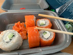 Выбрала этот «ресторан» по оценкам на Яндекс картах. Если тут стоит 5, страшно подумать, что делают другие. Ужасные роллы Филадельфия, есть невозможно, рыба вся перемороженная, сыр творожистый, достала из ролла что-то не понятное, похожее на глиста. Не умеете делать и пытаетесь экономить, так уберите из меню свежие роллы. Темпура очень вкусная, но все впечатление испорчено. Еще и ценник загнули под 600р за этот отвратительный ролл Филадельфию.