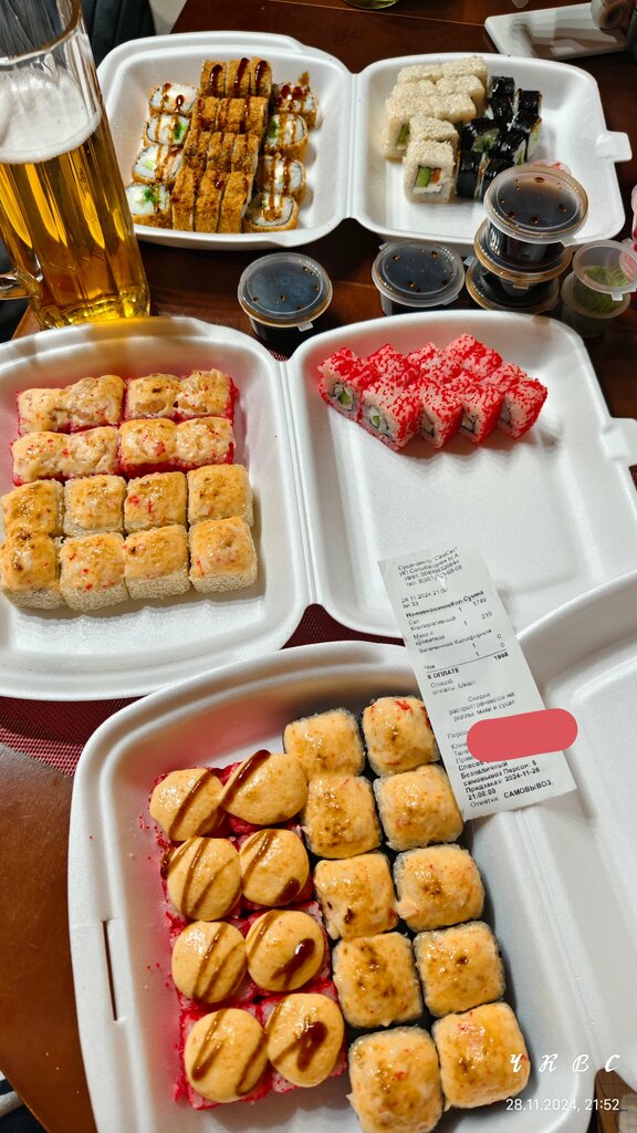 Заказали сет ,администратор обозначила время готовности 1,5 часа .За 30 минут до окончания указанного времени ,заехали узнать как дела . Администратор заглянув на кухню сказала что через 30 минут все будет готово .Чере 30 минут приехав за заказом ...Нам с улыбкой администратор и владелец ,,точки,, (как он себя назвал ) сказали что у них закончились нори и сказали либо подождать, но неизвестно когда привезут,либо отказаться .На вопрос почему не сказали сразу,что заказ не будет выполнен.Был ответ мы откуда знали что нори кончилось 😑😑.отстойное место