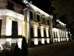 Ресторан неожиданно очень понравился! Неожиданно, наверное, потому, что вход в него в цокольном этаже, а так чаще всего устраивают бары и подобные заведения. Но нам повезло! Дождь лил как из ведра, и мы решили не искать других мест, чтобы пообедать, и спустились по лестнице. Просторное фойе, где можно оставить посушиться зонт и промокшие плащи; чистые туалетные комнаты с хорошим мылом; зал большой, но при этом очень уютный. Можно и группу туристов накормить, и юбилей отметить, и небольшой компанией пообедать после долгой прогулки по паркам и дворцам Петергофа. Официанты и администратор очень любезные, искренне приветливые, обслуживают быстро и корректно, не стесняются записывать заказ (теперь это почему-то не принято во многих местах), поэтому приносят всё, ничего не забывая и не путая. Мы втроем отлично провели время, с удовольствием поели, отдохнули перед обратной дорогой и сошлись на том, что обязательно будем обедать здесь, приезжая на новые экскурсии. Посмотрели даже на сайте номера в гостинице, расположенной в верхних этажах. Выглядит очень уютно и стоит недорого, притом что находится отель через дорогу от Верхнего сада и Большого дворца. Очень рекомендую гостям города, и вот почему: за один день Петергоф осмотреть не удастся, стоит уделить ему пару- тройку дней, чтобы и дворцы с павильонами осмотреть, и в парках (их несколько!) спокойно, с толком прогуляться пешком и на маленьких экскурсионных паровозиках. Чтобы увидеть сам город с вокзалом Бенуа, с Петропавловским собором и Ольгиным прудом. В Петербург совсем не трудно добраться как на общественном транспорте, так и на машине. Можно вообще за тридцать минут домчаться по заливу на метеоре прямо к Эрмитажу, если необходимо, правда, придётся заплатить за вход в парк, где находится пристань. Уже хочу снова сюда вернуться! Спасибо за уютную атмосферу и вкусную еду! Суп из свежих лесных грибов ( сейчас как раз сезон!) и солянка просто выше всяких похвал! Десерты ( мороженое и эклер) тоже очень хороши!