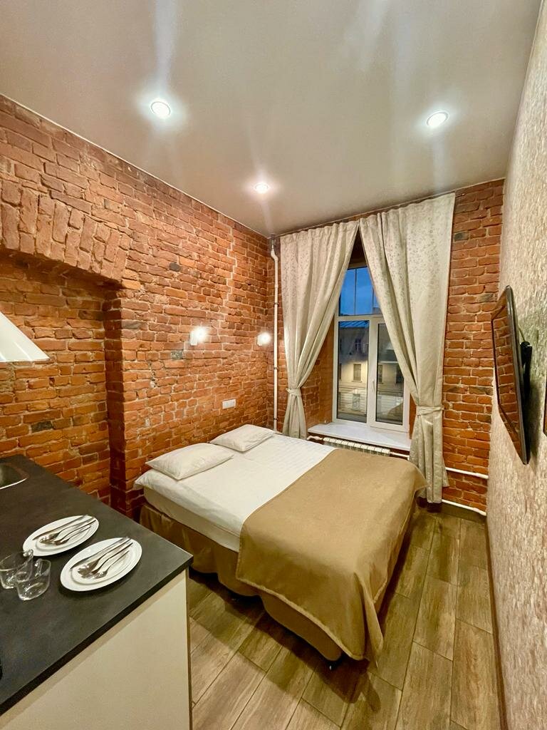 Расположение отличное,особенно для любителей пеших спокойных прогулок. Сам номер малюсенький,постоянно бились то об стулья,то об кровать.Вдвоем тесно. Полотенца не меняли,хотя мы попросили согласно регламенту отеля.Туалетную бумагу тоже ходили самостоятельно просили у уборщицы.В ванной запах сырости. Есть фен,холодильник и тараканы. Вообще сложно это назвать отелем,это скорее комнаты для посуточной аренды. Окно номера выходило на Загородный проспект,где с утра до ночи кипит жизнь.Открываешь окно-шумно,закрываешь-душно. Цена и качество соответствуют.