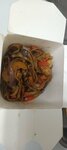 Часто бываю в данном заведении. В заказе были жареный ролл с бужениной в барбекю соусе и эби кранч маки. Первый а роллами ничего общего не имеет, но на вкус отличный, второй постоянно беру, ни разу не разочаровал. Также заказал пиццу из половинок - сливочный цыплёнок и сливочная креветка. На вторая половинка расстроила наполнением, кабачки не очень зашли, креветок мало, с курицей половинка - ну окэй. Чай с клюквой и брусникой отличный, но, на мой взгляд ягоды стоит разбивать в угоду вкусу, а не подаче.