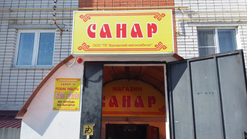 Один из магазинов Санар (Вурнарского мясокомбината). Находится на цокольном этаже. Магазин в принципе небольшой, но выбор товаров разнообразен: хлеб, макароны, молочные продукты, консервы и, конечно, колбасы и различные мясные продукты. Колбаса Ирландская и колбаски Дольче Вита, которые я здесь взял, мне очень понравились. Качественные продукты. Кассир работает быстро, чётко и вежливо. Около магазина есть небольшая парковка.