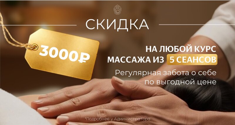 Начните день с заботы о себе. Получите скидку 500 ₽ на первое посещение массажа в Сочи с 10:00 до 12:00. Отличный повод познакомиться с мастером и зарядиться энергией. Подробнее у Администратора.