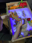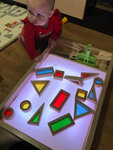 Очень понравилось всё начиная с консультации по телефону и заканчивая самим световым планшетом. Менеджер Оксана по телефону помогла подобрать именно то, что необходимо. Проконсультировала по размерам и составом наборов. Планшет идеально подошёл по размеру к детскому столу. Качество нам понравилось. Очень важно для нас, что сделано из массива дерева. Всё гладенько, ровненько, красиво. Заказ отправили на следующий день и до Ярославля дошёл за пару дней. Оплачивали наложенным платежом. Детки играют с удовольствием во множество игр. И рисуют кварцевым песком, и прикупили отдельно кинетический (чтобы лепить формочками). В интернете есть множество разных развлечений с таким гаджетом. Невероятно увлекает! Кроме того способствует развитию мелкой моторики, благотворно влияет на психику. Единственное, игрушка не для тех, кто боится бардака) кругом песок после игр, но для нас это не проблема. Пылесос выручает)