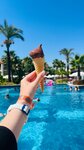 This is a great hotel. It is purely tailored to Germans, there are very few Russians, even the staff first tries to speak German, then switches to English. The entry into the sea is shallow and smooth, sandy, very comfortable and pleasant. There are no umbrellas on the beach, but canopies, it's very cool and convenient. The pool is extremely huge, there is enough space for everyone, many people play ball in the pool and do not interfere at all. Everything is great for food, there is free fresh orange for breakfast, which you can make yourself, there is delicious sausage and ham (this is rare for Turkey) I really liked that there were delicious cheesecakes for dessert, and not only these colorful, but absolutely tasteless cakes. Free dondurma by the pool in the afternoon! well, there are all sorts of waffles, tortillas and all that, too, but this is the standard. For lunch, it's better to go to the beach bar, there's something new on the grill every day, chicken, turkey, tuna, liver. It was delicious for us there , an unequivocal recommendation!