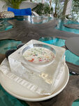 Атмосферно , вкусно. Интерьер красивый , столиков множество , много локаций. В весенне- осенний период есть на улице шатер. Морепродукты, рыбка , десерты что-то вкусно, что-то средне … Чуть- чуть бы побольше порции окрошки с крабом - подача красивая в ледяной тарелке , но там всего 2 ложечки самой окрошки …