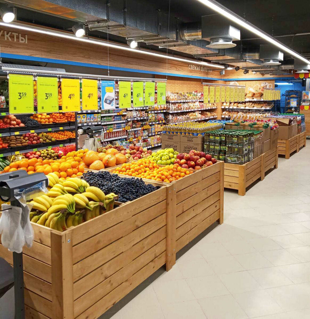 I often visit this store, since I live nearby, the assortment is not particularly large, since the store itself is not very large, the pizza area is not there, then it takes a long time, however, as when the pizza is delicious there) fresh pastries (buns), but what can you say about bread, it is constantly not fresh either that's how I got there) I see rotten vegetables and fruits quite often there, but not all of them. Prices are quite high, the choice of fish, etc., which should be the main thing in Santa is completely small, often long queues due to a lack of employees, or they just safely leave for lunch, leaving one cash register for the entire store, a consultant is very rarely in the self-service area and when you ask for help there is no one nearby, but the cashier not "10 hands" as I was once told) The sellers themselves are good, except for some)
