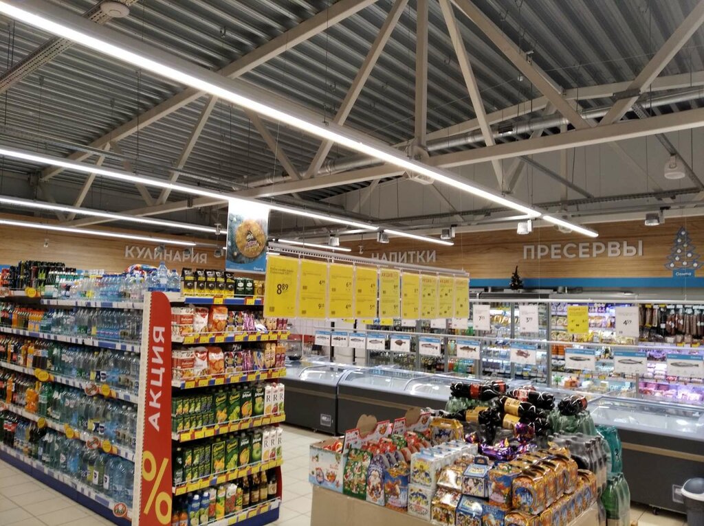 The store is within walking distance. This definition characterizes everything - the size, the range, and the quality. Everything that can be useful here and now. Well, provided it's a grocery store. Nearby there is a parking lot, a vending machine with drinking water. Convenient, fast, and good. There is a self-service checkout.