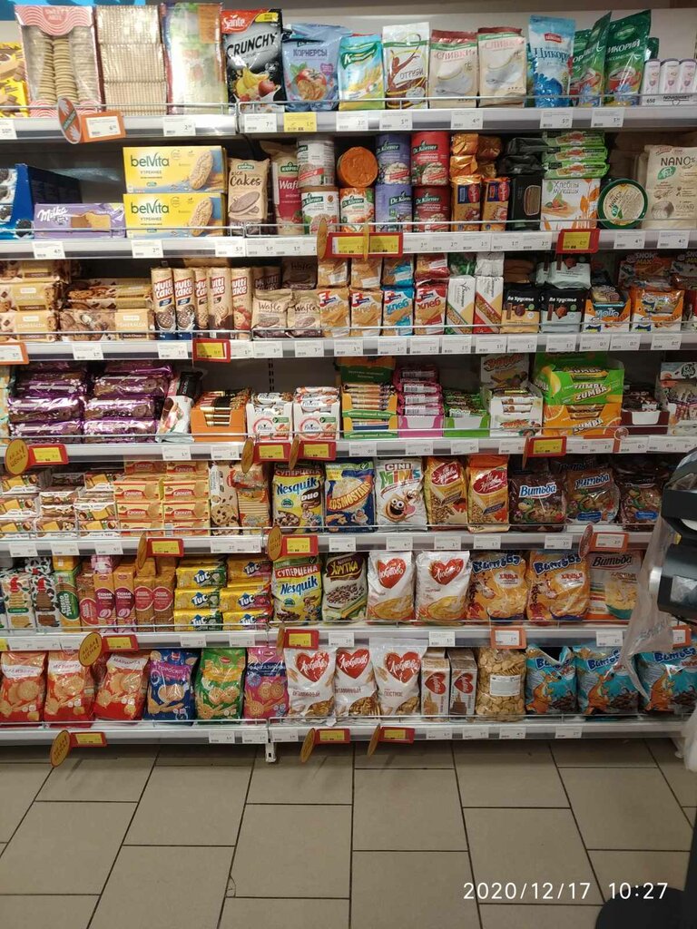 Nice shop at home! Quite a decent assortment, meat, groceries, vegetables and fruits, drinks, plus household goods make this store quite appropriate, because there is a very large residential area nearby. Insanely large parking for cars.