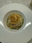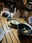 Еда на высшем уровне, брали Ризотто с криветками, криветок много, большие. Порции сытные, морепродуктов кладут много. Советую взять мидии в соусе, очень вкусное и огромная порцая! Атмосфера ресторна на высшем уровне, приятная музыка, большой зал, атмосферный интерьер, очень уважителтные официанты