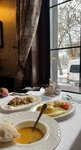 We were in Brest for a couple of days and stopped here a couple of times for breakfast. •Milk porridge is porridge soaked in milk, a very controversial dish, the child refused to eat it. • We ordered cheesecakes, they are served here as one large platter, and berries are inside (the first time we were given mangoes, blueberries, strawberries; and the second time there were some leftovers from either fruit juice or compote - so I advise you to check with the waiter what you should expect) • spinach leaves are poorly washed (if you even bothered to wash it) •the dumplings are quite tasty • serving an omelet with slices of salmon without imagination . Of course, I would like to see an omelet juicy and lush, and not a dry envelope with tears in the form of salmon. The salmon cheesecake was ordered by a child and it was extremely unfortunate . The serving is also controversial, moreover, there is some kind of sauce that tastes quite spicy (I tried it personally, it vaguely resembled adjika), although the waiter did not confirm my assumptions. •the establishment is not dog friendly (like the vast majority of establishments in the city) I liked the interior, the friendly hostess, the canaries, the veranda on the top floor is a great bonus. Otherwise, we are unlikely to advise our friends , and we ourselves will not look a third time .