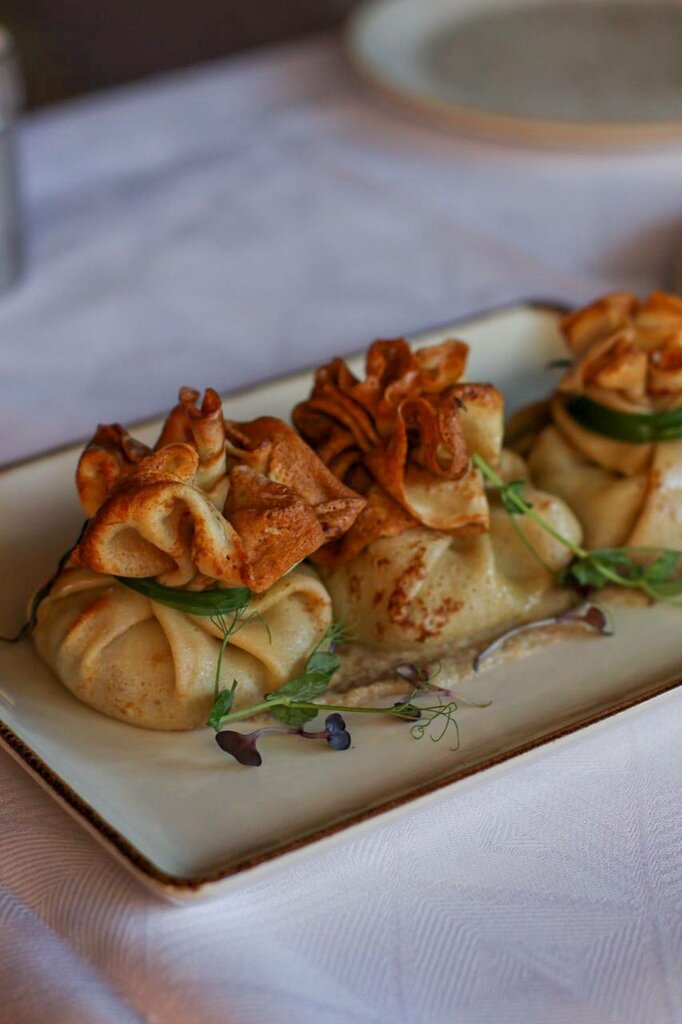 5 out of 5, 10 out of 10, everything is super tasty and served quickly, and their hall with an open fireplace in the center of the hall, which is lit in winter, is generally top. If you have the opportunity to come with your family to order a samovar with dried fruits, brushwood, cones and honey, you will definitely do it, you will not regret it. Borscht is also worth noting, very rich, with sour cream and warm pom-poms, very tasty and fragrant. The place is very authentic and beautiful.