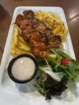 Обслуживание быстрое,еда вкусная , порции большие, в добавок ещё и вид с небольшой терассы у реки красивый, всем советую, особенно рекомендую в прийти в хорошую погоду на закате с девушкой или женой)