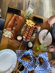 Еда "огонь", цены очень демократичны для Сочи. Порции большие. Особенно понравился барашек) Для пар, есть столики на двоих на террасе, с видом на реку.