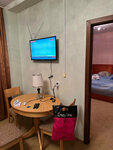Санаторий 3 звёзды находится на окраине города. Начну с плюсов. В санатории хорошая лечебная база, много разных процедур, отличное вкусное питание, большие порции (повара вызывают восхищение) Везде чистота и порядок. Большой плюс, что все находится в одном здании и в холодное время года не нужно бегать по улице. Есть бассейн, правда небольшой 4х12 м. Мы жили в 2-х местном номере стандарт. Номер уютный, удобный, чистенькой, только кровати у нас были старые, но матрасы нормальные. Отношение персонала хорошее, спокойное, добродушное. В коридорах везде стоят куллеры с горячей и холодной водой. Теперь о минусах. В ванной номера нет полотенцесушителя (впервые такое встречаю), фена. В номере был совсем маленький телевизор с " супер" антенной (фото прилагаю) и приставкой, который то отключался, то зависал, то трещал. У нас 21 век, а здесь антенна сделана петлей из кабеля (самодельная). Белье видимо когда то было белым, а теперь застираное. Подушки и одеяла видимо ещё с времен СССР (перьевые и ватное). У горничной попросили настольную лампу, нам выдали старенькую, но и то хорошо .В бассейне нет фена, массажная установка не работает. Лифт один и поднимает только с лифтером, которого нужно каждый раз вызывать. По вечерам почти нет никакой анимации, иногда играет баян. Организуются какие то экскурсии, но мы не ездили. Территория маленькая, гулять негде и плюс ко всему, поскольку мы отдыхали в марте, ее не чистят от снега совсем, только пятачок у входа, хотя из далека видели на территории тренажёры, скамейки и беседки, детская площадка, но к ним не пролезть. Приходилось гулять по тротуару вдоль дороги за пределами санатория. В принципе, в санатории неплохо для тех, кто любит спокойный отдых и особо не притязателен.
