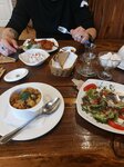 Обедали в данном заведении с мужем и ребёнком, Еда понравилась, порции достаточно большие,цены приемлемые В кафе чисто, уютно, и главное все столики сделаны с перегородками , можно поесть спокойно 👌 Хлебушек отдельный разговор , обалденный 👍