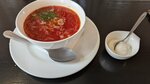 Заказали обед ,самый так сказать бюджет. Борщ ждали минут 30.Будто его готовили , на второе подали домашние если можно так сказать огурчики.Все вкусно но огурчики уберите не травите людей. Частенько, вежливые официанты.