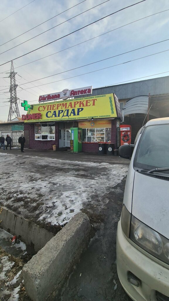 The Sardar store stands in a prominent place on Ryskulov Street. The store has not only groceries, but also a cheap pharmacy. You can buy vegetables and fruits. There are also samsushki and tortillas near the Sardar. A very good store. I like.