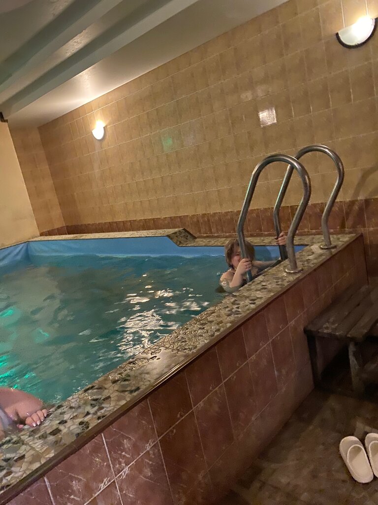 Сауна отличная, были первый раз с детьми и остались довольны на всё 100% особенно дети. Бассейн отличный есть детский и взрослый,вода тёплая, дети остались довольны. Есть чайник,чай на выбор,кружки,микроволновка,музыка.Администратор вежливая женщина всё обьяснила рассказала. Рекомендую!!!!!