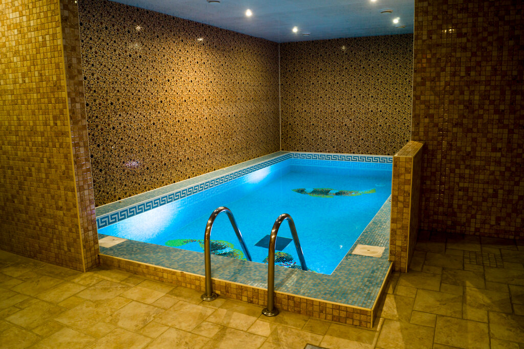 Свет частично не работает по периметру,а так же подсветка у бассейна. Лестница скользкая будьте аккуратнее. У нас с синяками обошлось. Стены и потолок требуют ремонта. Диванчик облезлый. Сауна с большим бассейном в будни дни 2100 за час,2300 в выходной день. Сама сауна жарит.