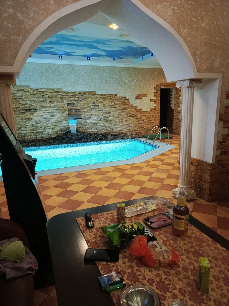 Хорошая сауна, бассейн с комфортной теплой водой, есть фонтан, его можно включить выключить самим . Парилка жаркая , грелись даже с ребёнком , дышать легко. Так же можно заказать еду из кафе что рядом. Я так поняла это одно и тоже заведение. Из минусов, нету вытяжки , для некурящих будет неприятно находиться. В целом мы очень хорошо отдохнули семьей после рабочих будней, релак так сказать до самых косточек.