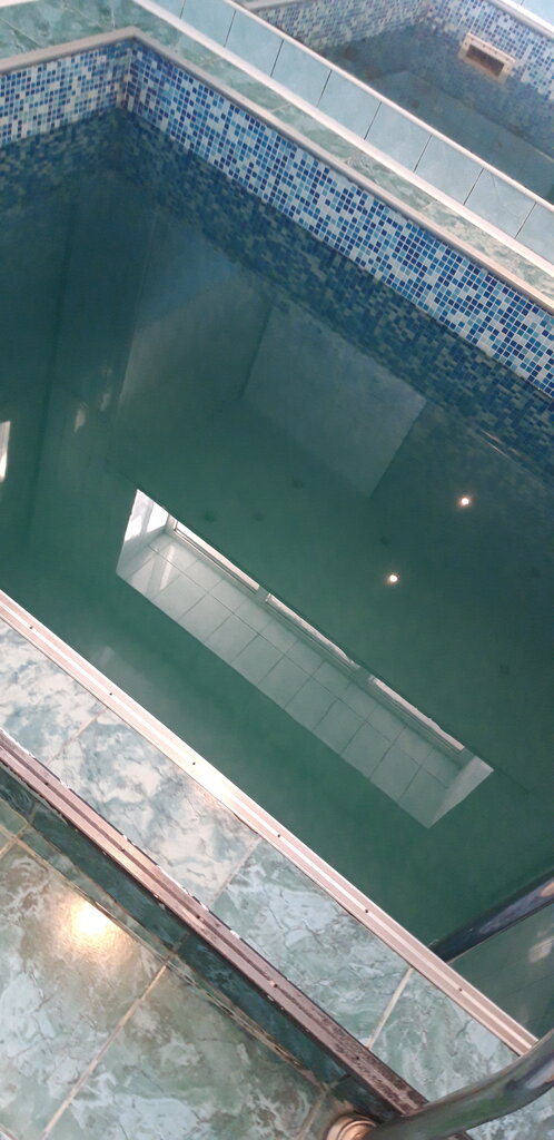 Неплохая сауна, всё чисто, вода порадовала, тёплая, как парное молоко. Парилка жарит. В номере на 4х бассейн маловат😔 и очень глубоко. Я с ростом 1,6 не достаю до дна😔 Для сравнения посмотрела бассейн в номере на 6х-там бассейн больше и углубляется к середине. Из минусов-посуда в плачевном состоянии.