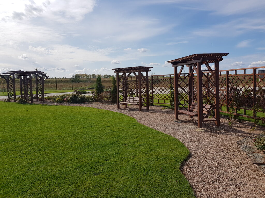 Красивые домики в отдаленности от города. Территория частично благоустроена, имеются детские и спортивные площадки, пост охраны и площадки для отдыха.